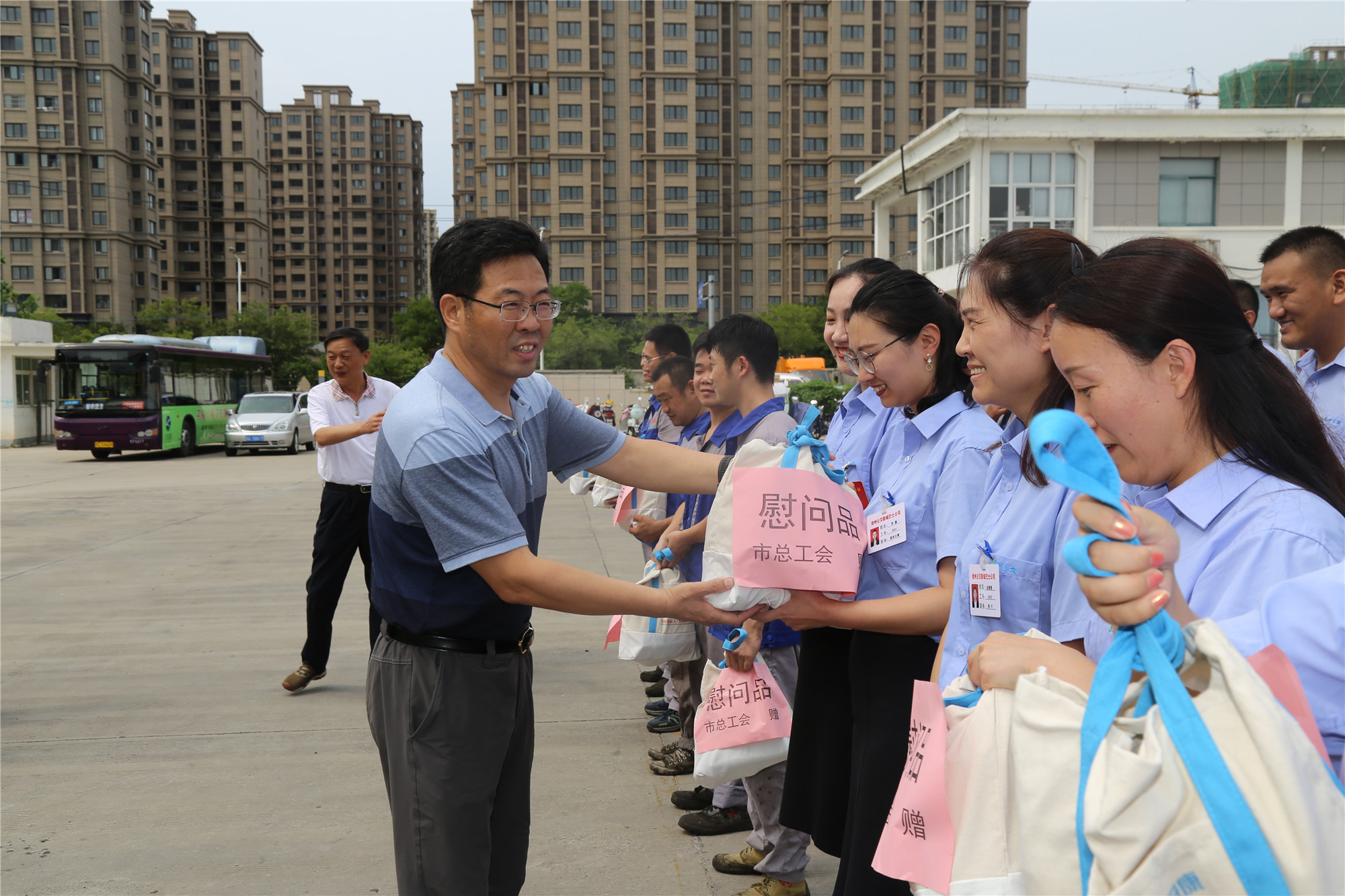 正值盛夏,近期我市持續(xù)高溫、濕熱多雨,持續(xù)攀升的炎熱天氣“烤驗(yàn)”著堅(jiān)守崗位的公交職工。三伏天里,工會(huì)娘家人總是心系一線職工安康,8月1日下午,徐州市總工會(huì)黨組成員、副主席王建民,副調(diào)研員馮相合等一行,在市交通運(yùn)輸局工會(huì)副主席巨玲和徐州公交公司總經(jīng)理馮陸陸,公司黨委副書記、紀(jì)委書記、工會(huì)主席竇同銀的陪同下,頂烈日冒酷暑來(lái)到郭莊路公交停車場(chǎng),看望慰問(wèn)了奮戰(zhàn)在高溫一線的公交職工,送來(lái)了高溫慰問(wèn)品,更送來(lái)了殷殷關(guān)愛(ài)和叮嚀,讓大家感受到了夏日里的絲絲“清涼”。