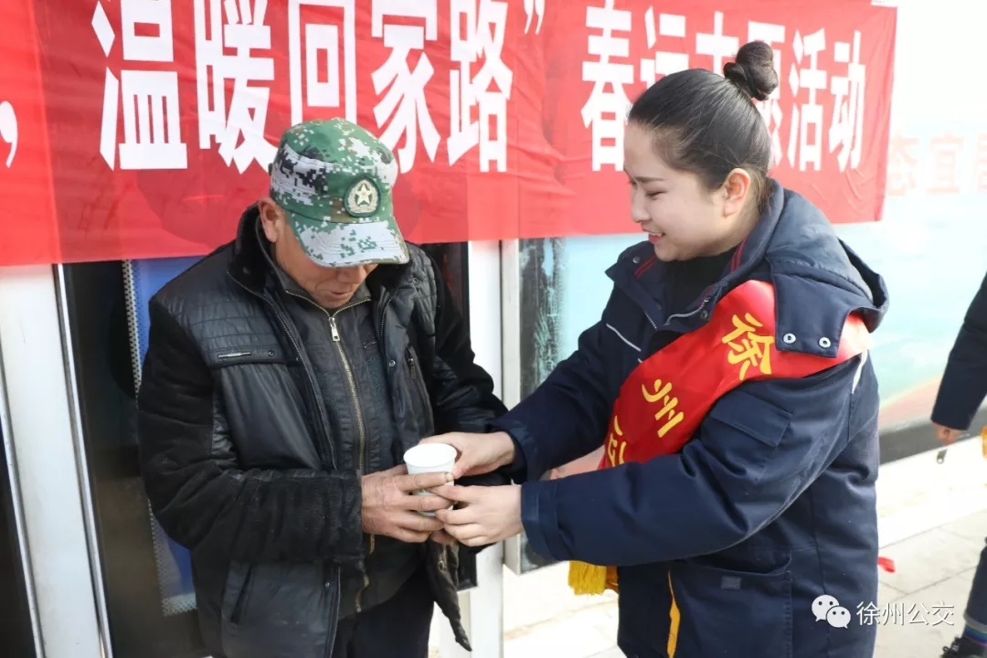 熱情的微笑,真誠(chéng)的服務(wù),讓歸家的乘客感受到了徐州的溫暖。其中,兆通公司組織志愿者走上公交車,裝扮年味車廂;順通公司提早準(zhǔn)備了50余份“?!弊执盎ê蜔艋\,免費(fèi)送給市民和準(zhǔn)備返鄉(xiāng)的旅客;新城公司、保修公司向乘客宣傳平安春運(yùn)知識(shí),讓乘客走得安全、放心。