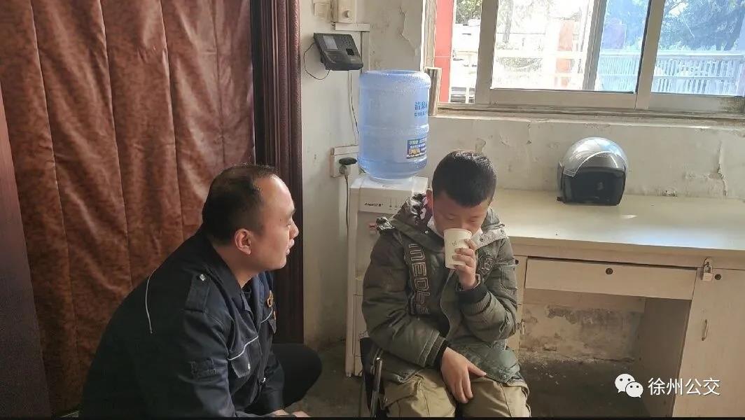 車隊服務人員閆翔給男孩倒了杯熱水,搬來椅子讓其坐下并耐心詢問道:“小朋友,家住哪兒?知道爸爸媽媽的電話嗎?”可男孩只說自己叫蔣彥君,今年12歲,媽媽在東站賣充電寶,家庭詳細住址不知道,家長電話也不記得。聽完后,閆翔趕緊用手機給孩子拍了張照片,發(fā)給東站現場調度員王海俠,讓其到東站查找,可王海俠問了個遍,也沒找到男孩的家人。最后,閆翔撥打了“110”報警電話,向民警求助。