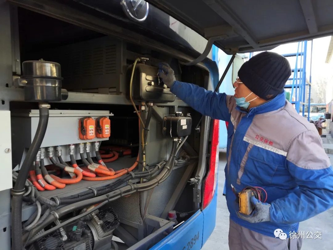 針對氣溫驟降,集團(tuán)積極做好車輛機(jī)務(wù)保障工作,提前對柴油車輛及安裝燃油水暖加熱系統(tǒng)的純電動車輛更換低標(biāo)號柴油,防止出現(xiàn)結(jié)臘現(xiàn)象;做好管路防凍工作,對車輛的氣路管路、儲氣筒徹底放氣、放水;為了預(yù)防車輪制動蹄片與制動鼓、輪胎與地面之間出現(xiàn)冰凍現(xiàn)象,各單位要求駕駛員在出車前提前開啟車載空調(diào)暖風(fēng)設(shè)備,收車后做好車輛駐車停放工作。同時(shí),在每個(gè)車場安排專人值守并做好修理人員、充電工的防寒保暖工作。