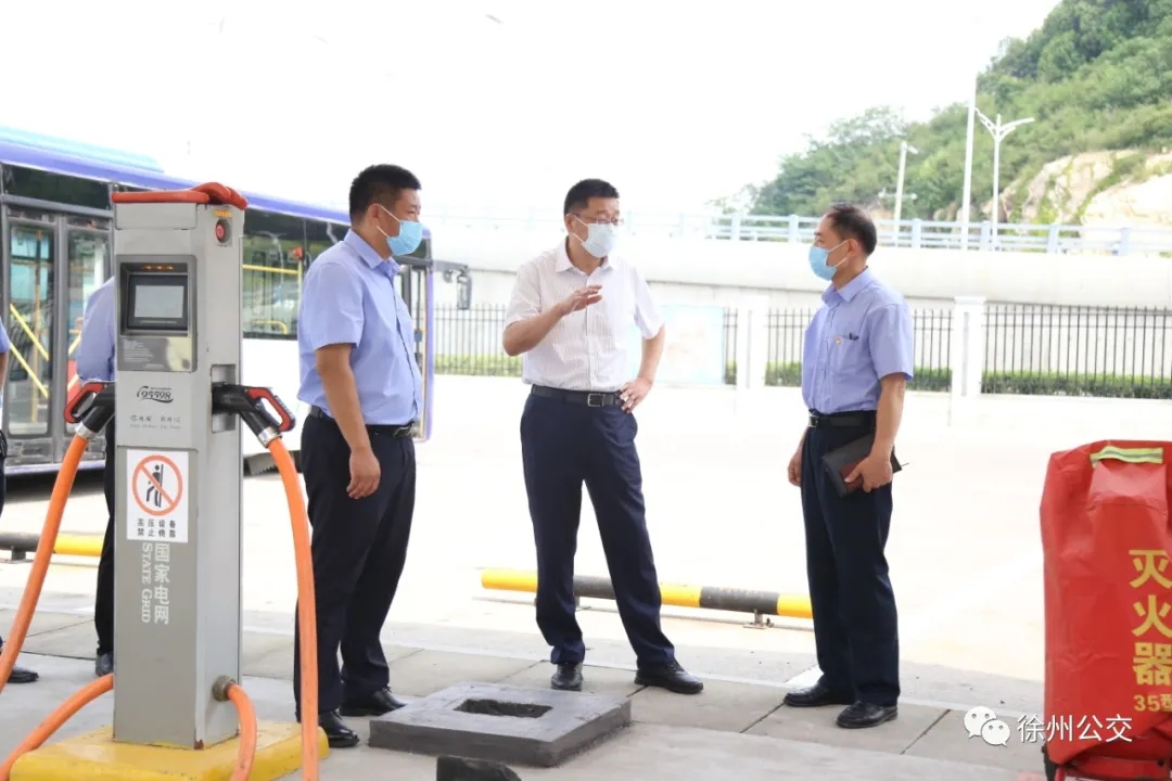賈泉涌等一行先后來到徐州東站的停保場、充電站、始發(fā)站等處現(xiàn)場查看調(diào)研,認(rèn)真聽取了車輛充電用電、場站建設(shè)、線網(wǎng)規(guī)劃等相關(guān)工作情況的匯報。