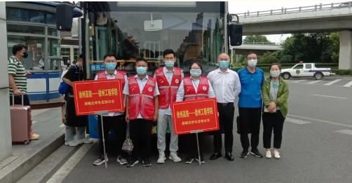 同時,為了服務(wù)好學生返校,新城公司組織雷馳平安志愿者服務(wù)隊在徐州東站出口處集結(jié),隊員們高舉引導牌,迎接工程學院學子的到來?,F(xiàn)場幫助學生們提箱子拿行李,測體溫,查驗“兩碼”,引導學生有序上車。并在車內(nèi)備有應(yīng)急藥箱、消毒濕巾、口罩、飲用水等物資,受到學生們的一致好評!