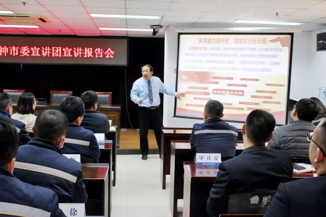 為學(xué)習(xí)貫徹黨的二十大精神,在全集團(tuán)迅速掀起學(xué)習(xí)宣傳貫徹黨的二十大精神熱潮,切實(shí)用黨的二十大精神統(tǒng)一思想、統(tǒng)一意志、統(tǒng)一行動(dòng),12月1日下午,公交集團(tuán)邀請(qǐng)市委宣講團(tuán)成員、徐州工程學(xué)院馬克思主義學(xué)院副院長(zhǎng)周海航作黨的二十大精神專題宣講報(bào)告。集團(tuán)領(lǐng)導(dǎo)、基層運(yùn)營(yíng)公司及直屬單位班子成員、機(jī)關(guān)部室負(fù)責(zé)人參加報(bào)告會(huì)。集團(tuán)黨委書記、董事長(zhǎng)曹震作講話,黨委副書記、紀(jì)委書記、工會(huì)主席竇同銀主持會(huì)議。