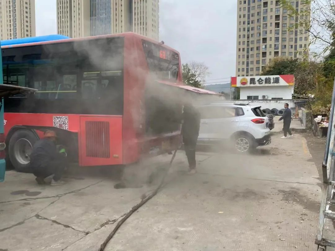 目前,公交集團(tuán)老舊車輛較多,純電動(dòng)車輛占比較小,常規(guī)車輛年限使用較長(zhǎng),導(dǎo)致部分車輛發(fā)動(dòng)機(jī)底部、機(jī)油散熱器、液壓助力轉(zhuǎn)向泵等部位表面長(zhǎng)期附著油灰。各維保車間雖定期組織人員進(jìn)行清理,但是受場(chǎng)地條件及設(shè)備因素制約,效果不明顯,機(jī)務(wù)安全隱患較大。為杜絕安全隱患,確保公交車輛正常使用,近日,徐州公交金通公司通過(guò)對(duì)外招標(biāo)的形式簽訂專業(yè)干冰清洗公司,對(duì)公交車輛進(jìn)行干冰清洗工作。