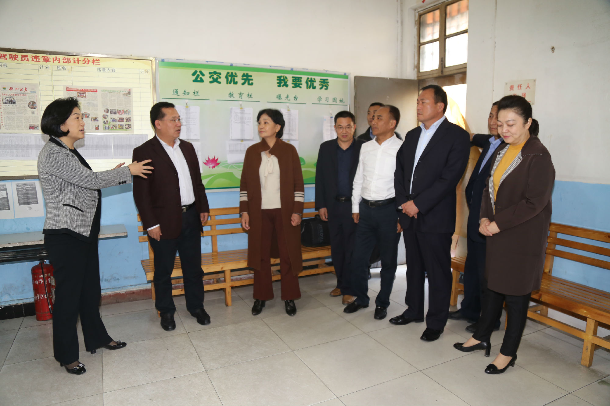10月24日下午,市政協(xié)副主席張耀環(huán)帶領工會界別部分委員,來到公交建筑學院調(diào)度室“公交愛心驛站”站點,視察我市戶外工作者服務站點建設情況。市政協(xié)常委、市總工會副主席劉洪印出席活動,市交通運輸局工會主席王培河、公司董事長、總經(jīng)理杜紅軍陪同視察。
