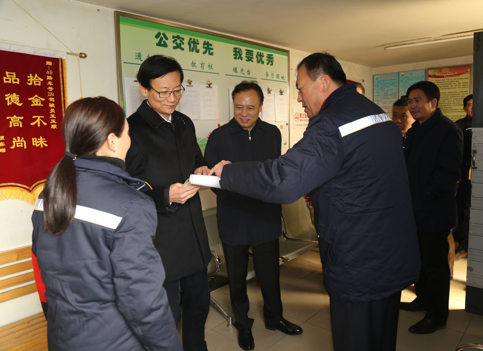 1月18日上午,徐州市副市長趙立群、副秘書長陳剛等領(lǐng)導(dǎo),在市交通運(yùn)輸局局長蔡前鋒、副局長李開春,公司董事長、總經(jīng)理杜紅軍等的陪同下,來到公交保養(yǎng)廠調(diào)研視察。