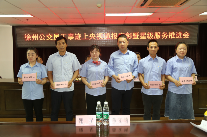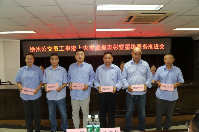 5月30日下午,公司隆重召開了“徐州公交員工事跡上央視通報(bào)表彰暨星級服務(wù)工作推進(jìn)會(huì)”,對近30多天來受到市以上新聞媒體,包括被央視宣傳報(bào)道的救助病人、照顧老人、見義勇為、優(yōu)質(zhì)服務(wù)的優(yōu)秀員工進(jìn)行了集中表彰獎(jiǎng)勵(lì),公司董事長、總經(jīng)理杜紅軍,工會(huì)主席竇同銀,調(diào)研員祖伯鴻及各單位分管領(lǐng)導(dǎo)、服務(wù)主管、政工員、先進(jìn)典型等一線員工代表82人參加會(huì)議。