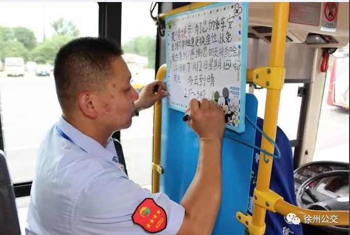 原來他已養(yǎng)成了習(xí)慣,在他的駕駛室后方掛著一塊白板,寫著乘車的溫馨提示語和天氣情況。每天他都會記錄下當(dāng)天的天氣情況:“為了您的乘車安全,請不要隨意更換座位。感謝您的支持!2018年7月12日星期四,多云到晴,27~34攝氏度”,“特別是老年人、孩子,開車時換位子太危險(xiǎn)了。”薛松解釋道。